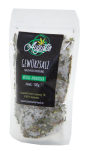 Würzig-aromatisches Salz mit getrocknetem Hanffruchtstand, Fenchel und Mutterkümmel (Kreuzkümmel). Geschmackvolles Salz, das dem Gericht eine orientalische Note gibt und sein Aroma während des Garens noch intensiviert.